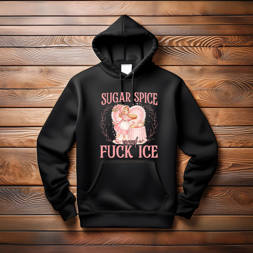 The Sugar, Spice, and F*ck ICE Hoodie flips a familiar phrase into a sharp political statement—because you can be kind, playful, and still completely done with injustice.